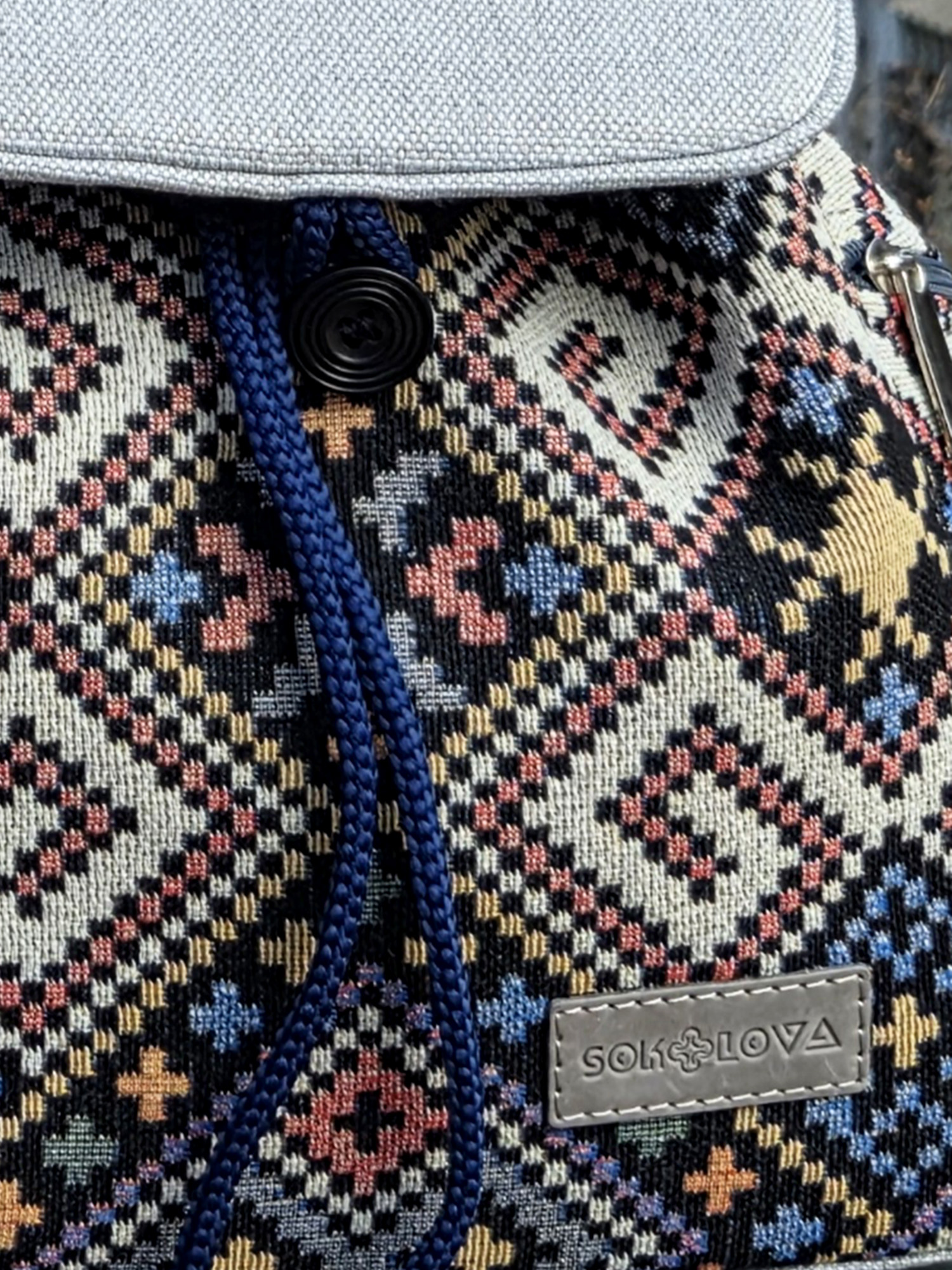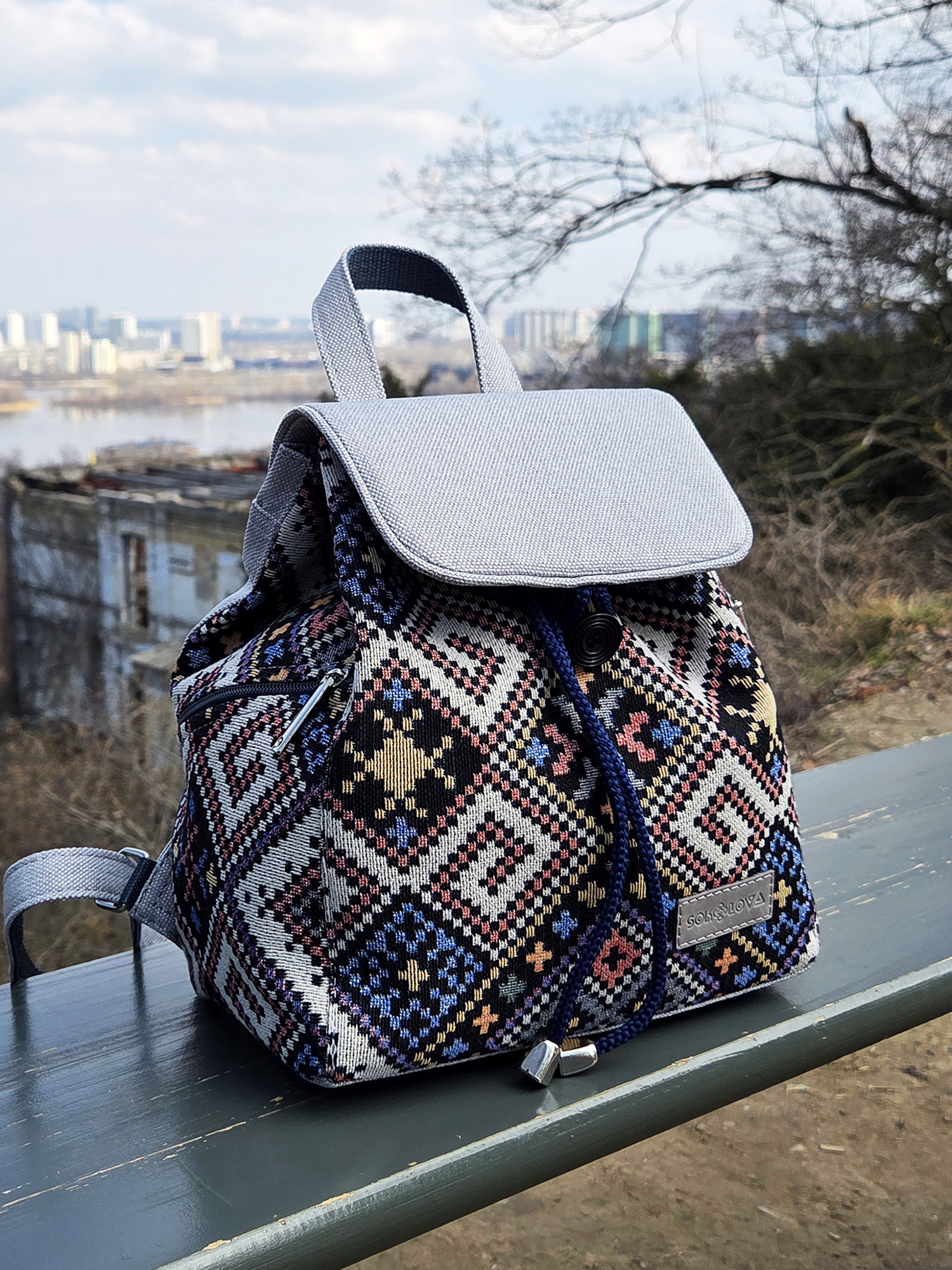 🤍 Традиційні мотиви: Унікальний візерунок на гобелені нагадує традиційну українську вишивку, що додає рюкзаку особливого шарму та автентичності.