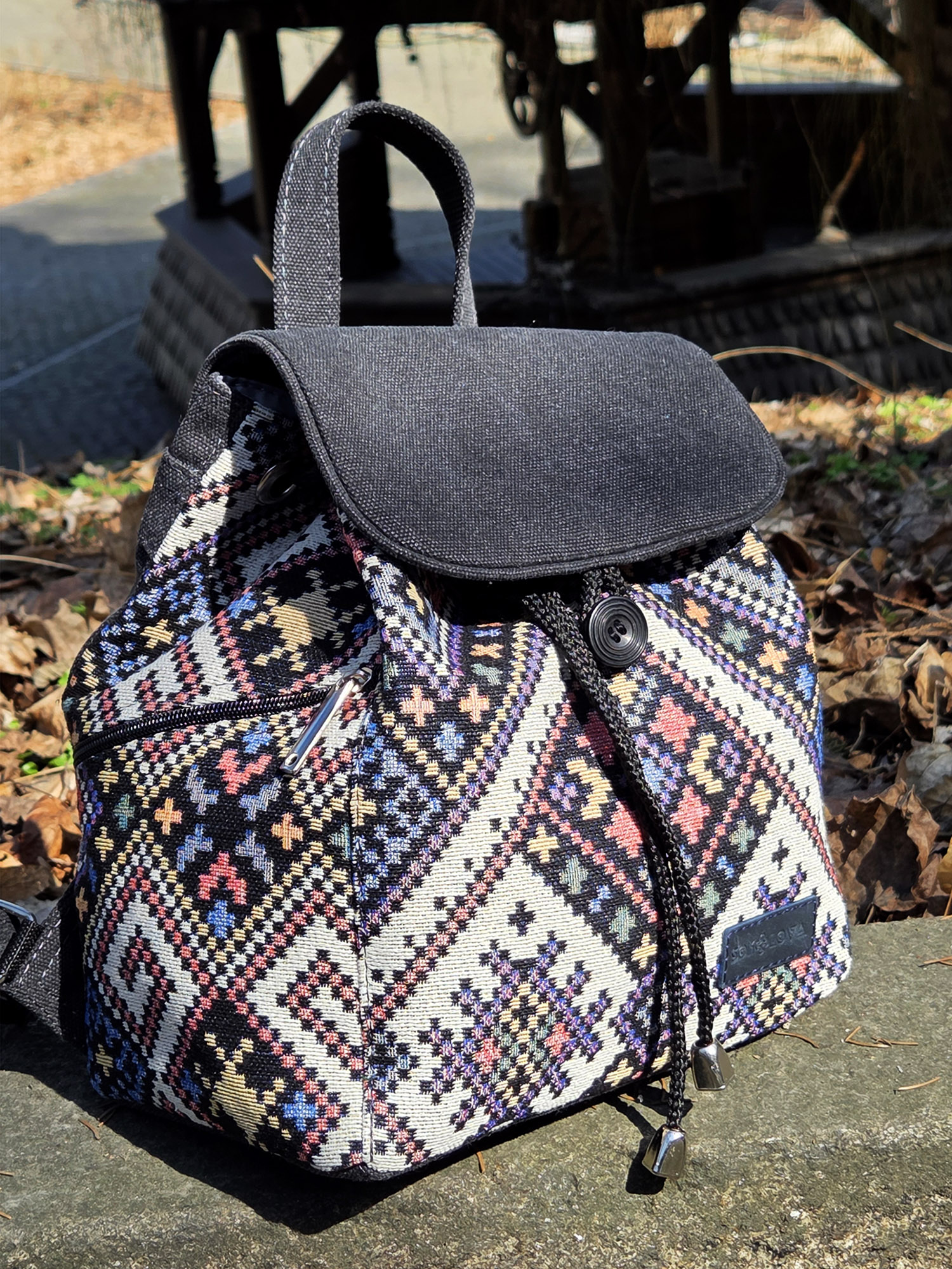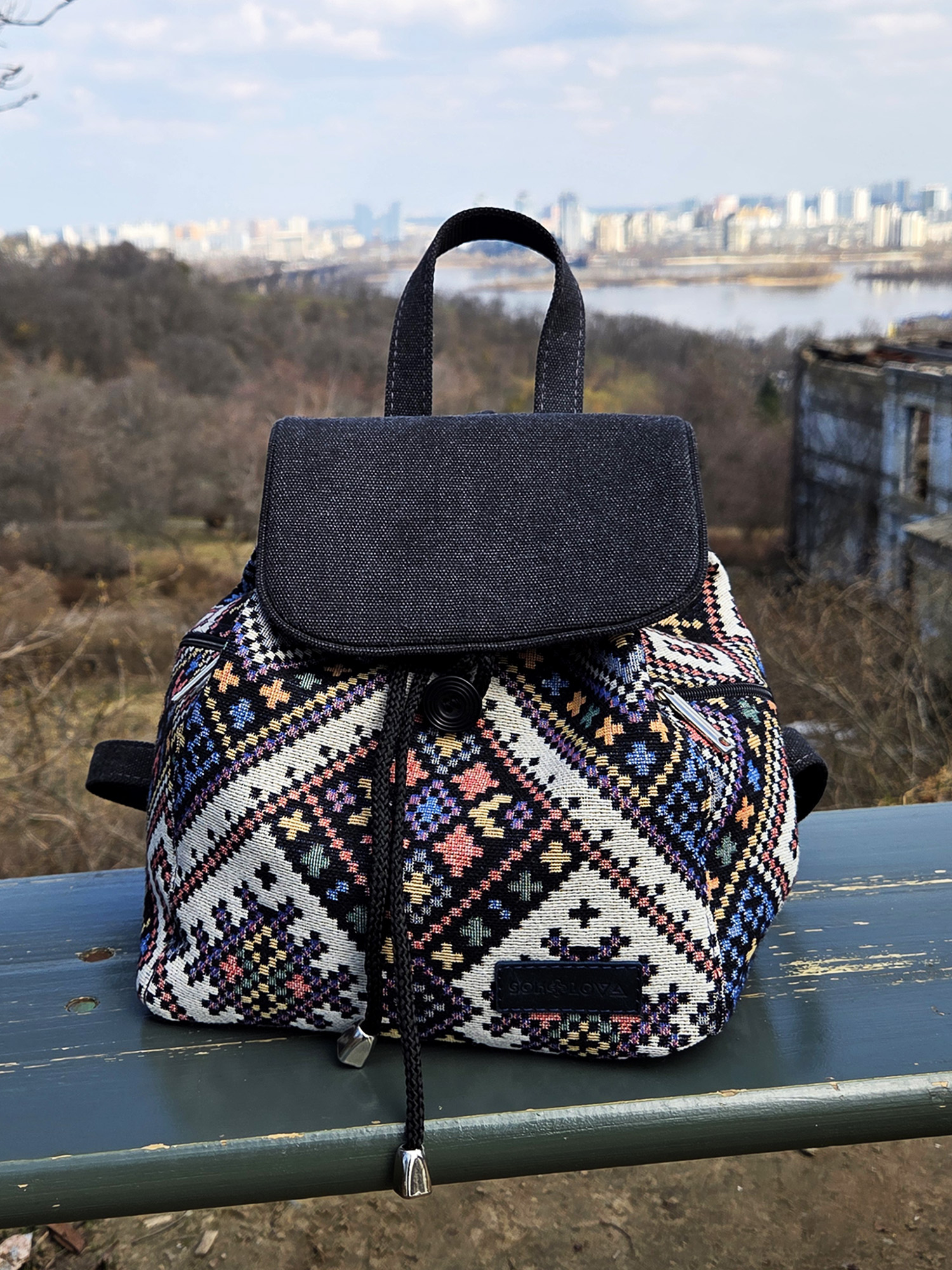 ❀ Традиційні мотиви: Унікальний візерунок на гобелені нагадує традиційну українську вишивку, що додає рюкзаку особливого шарму та автентичності.
