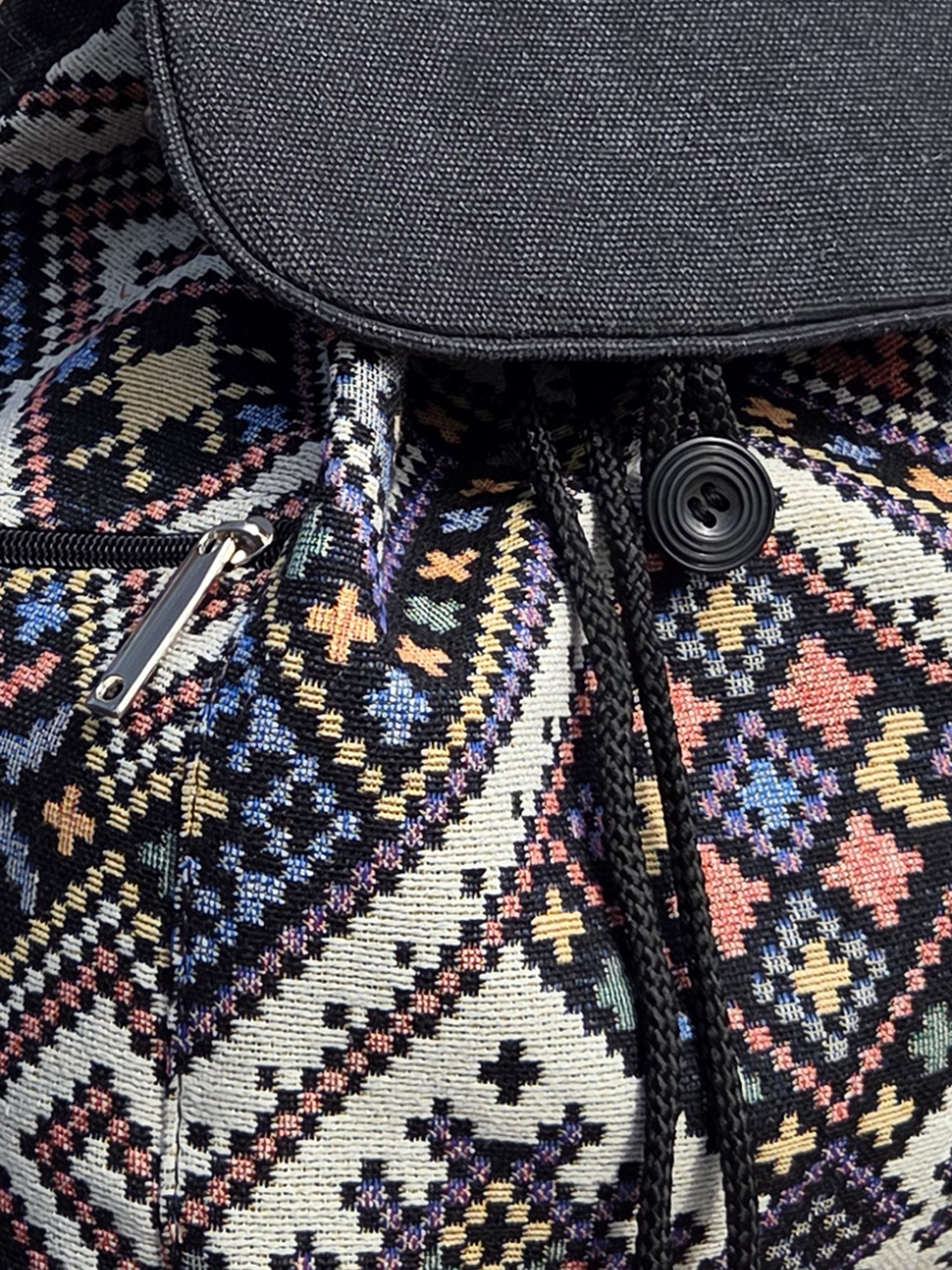 ❀ Вишукана комбінація фактур: Основна частина рюкзака виконана з гобелена. Клапан, ручка та лямки зроблені з міцної сумочої тканини канвас. Всі тканини зносостійкі, чудово тримають форму та приємні на дотик.