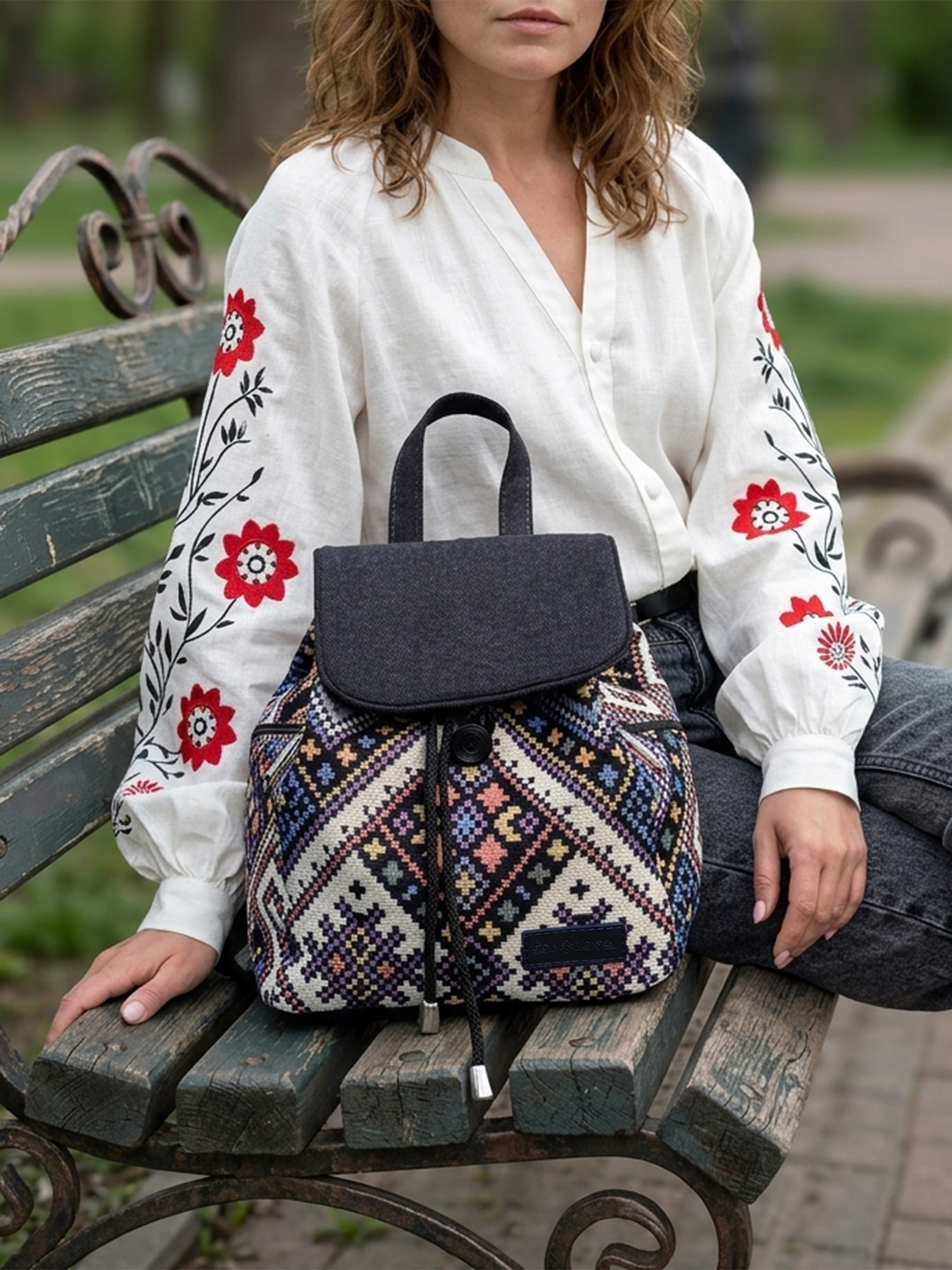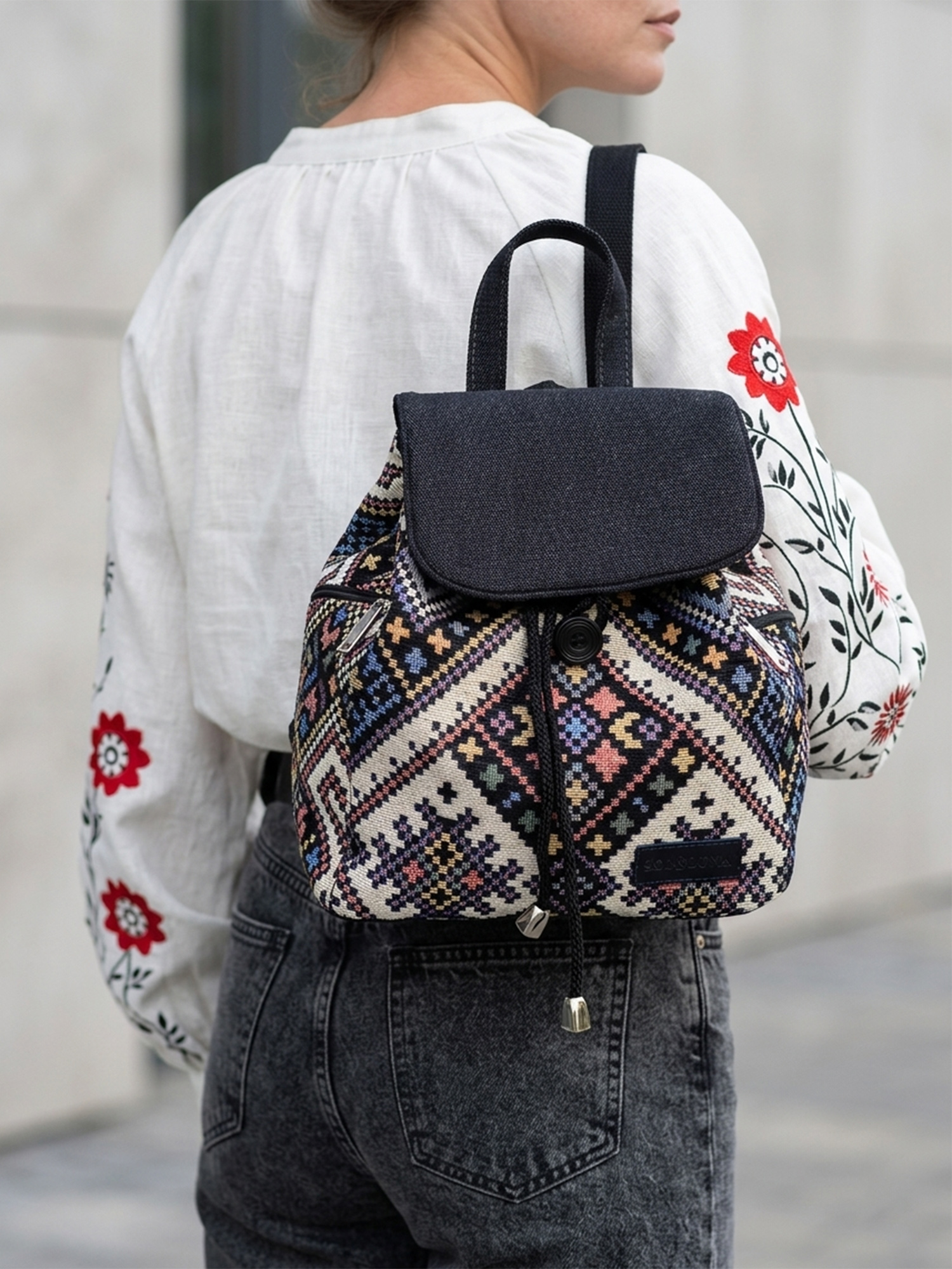 Гобеленовий рюкзак в українському стилі — це універсальний аксесуар, його природні та стримані відтінки бездоганно пасуватимуть до будь-якого вашого образу, додаючи йому особливого шарму.