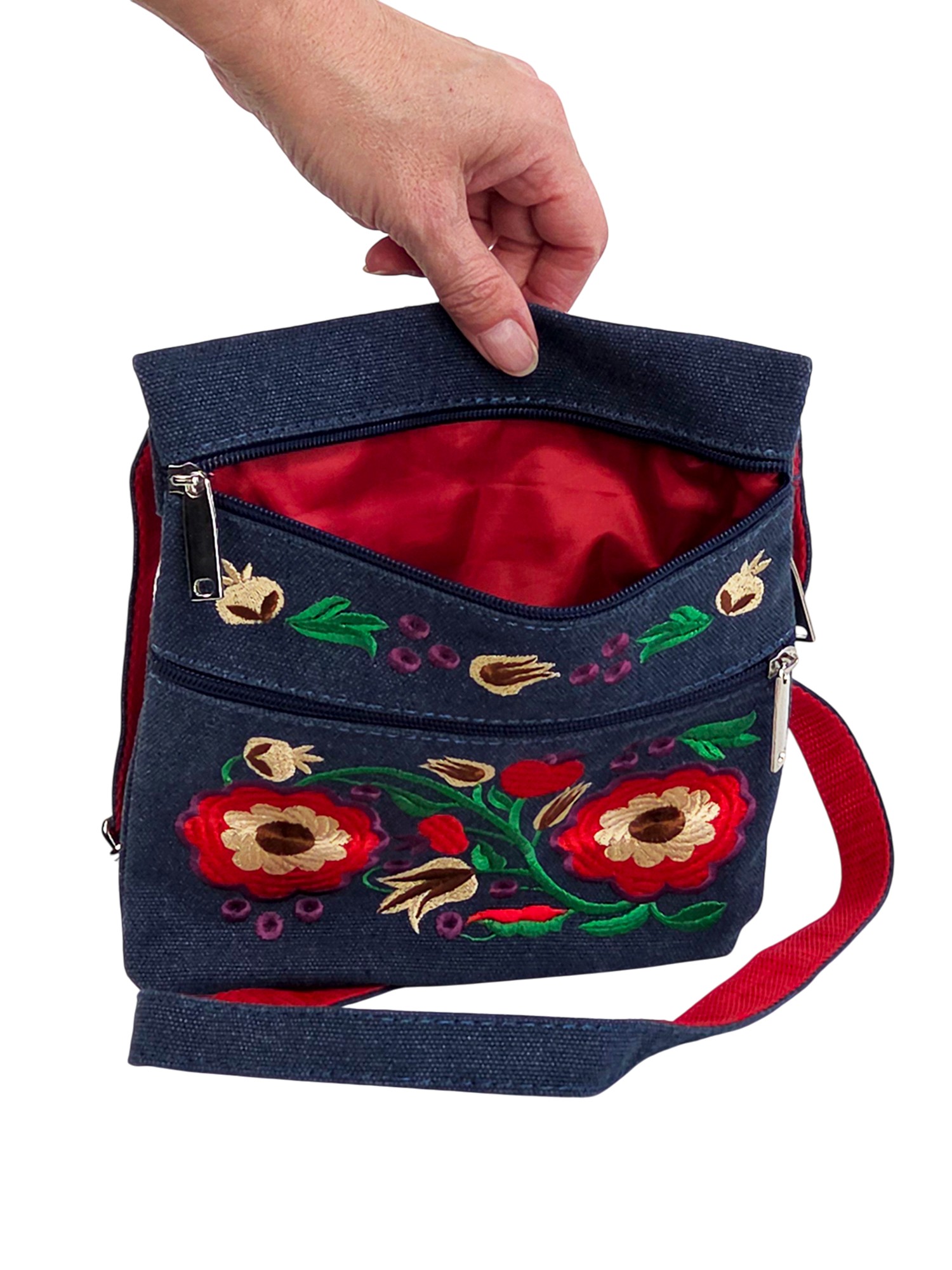 ❉ Виготовлена з канвасу синього кольору, вона вражає своєю вишуканістю та довговічністю.