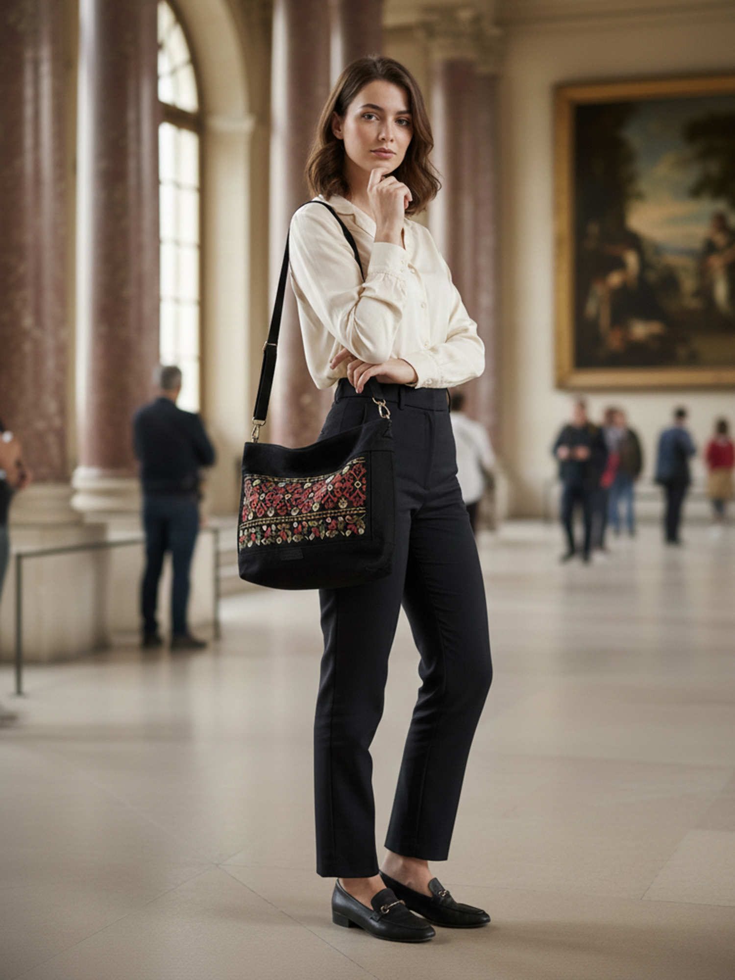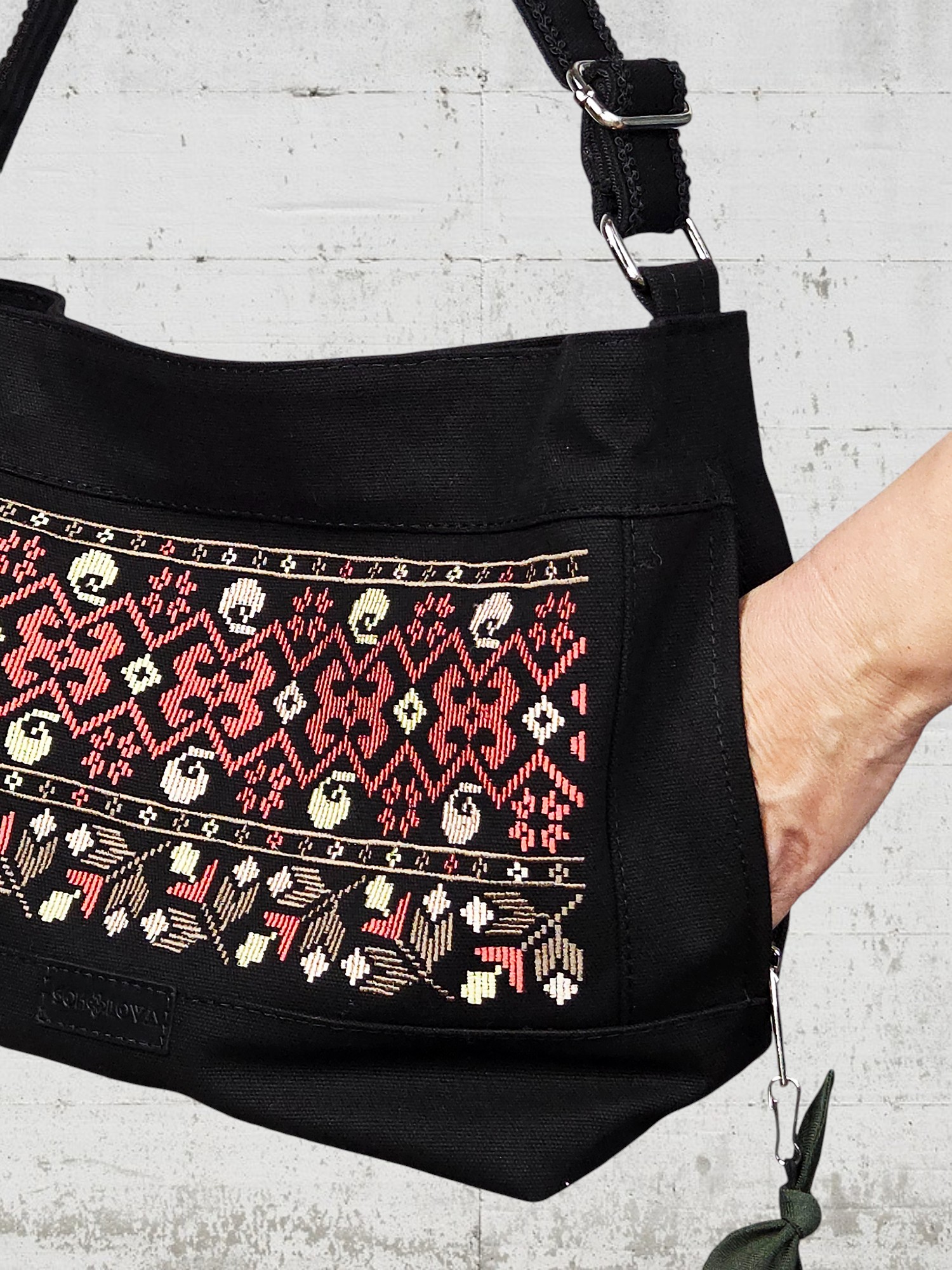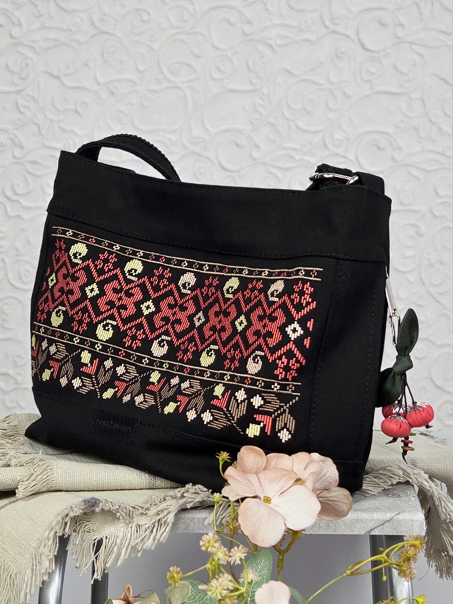 Чорна сумка з вишивкою моделі “Птаха” — ідеальний вибір для сучасної жінки, яка цінує українську автентичність та максимальну зручність.
