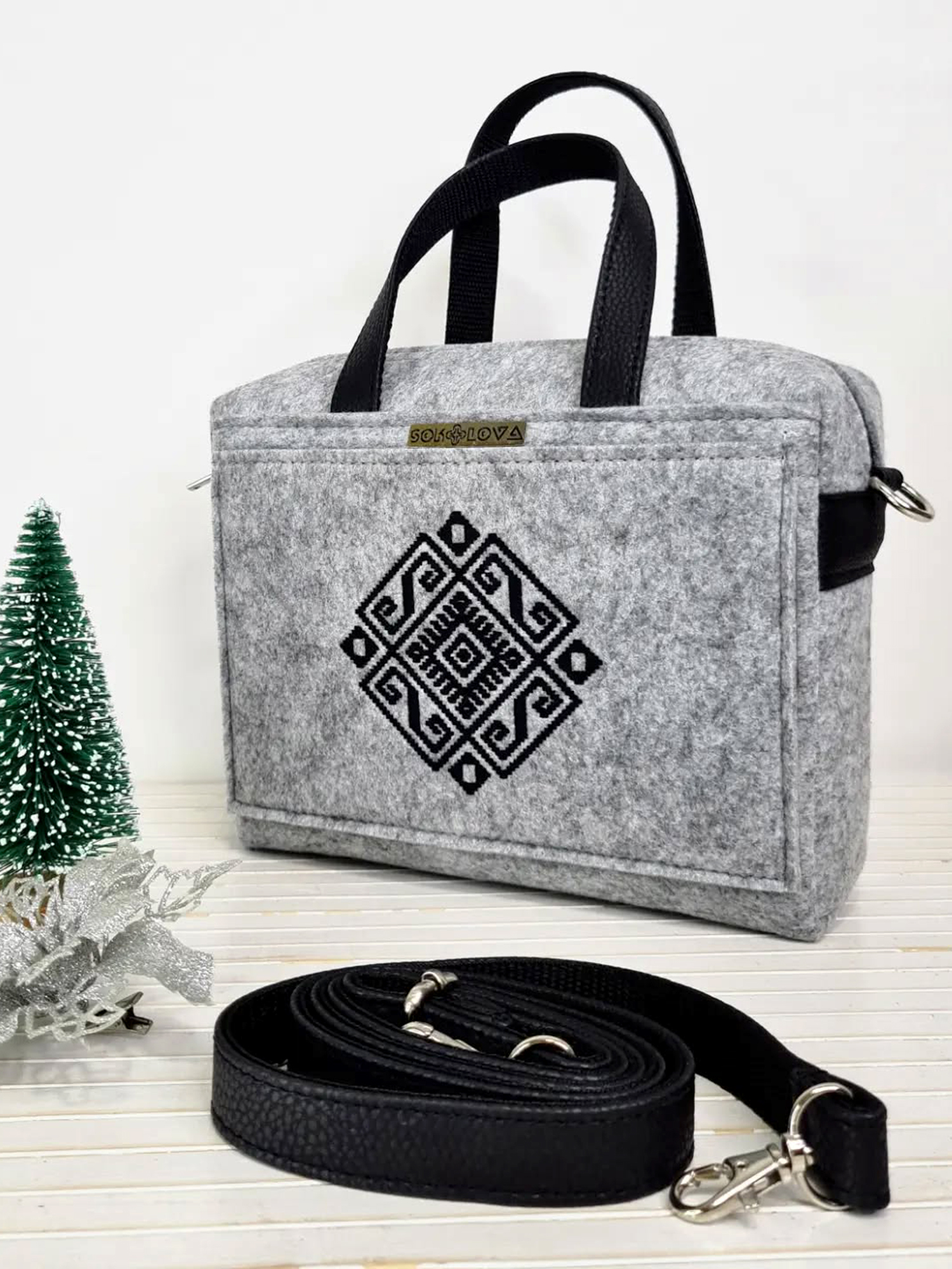 Фетрова сумка з вишивкою “Сігма” від Sokolova — це ідеальний вибір для прохолодних осінніх та зимових днів.
