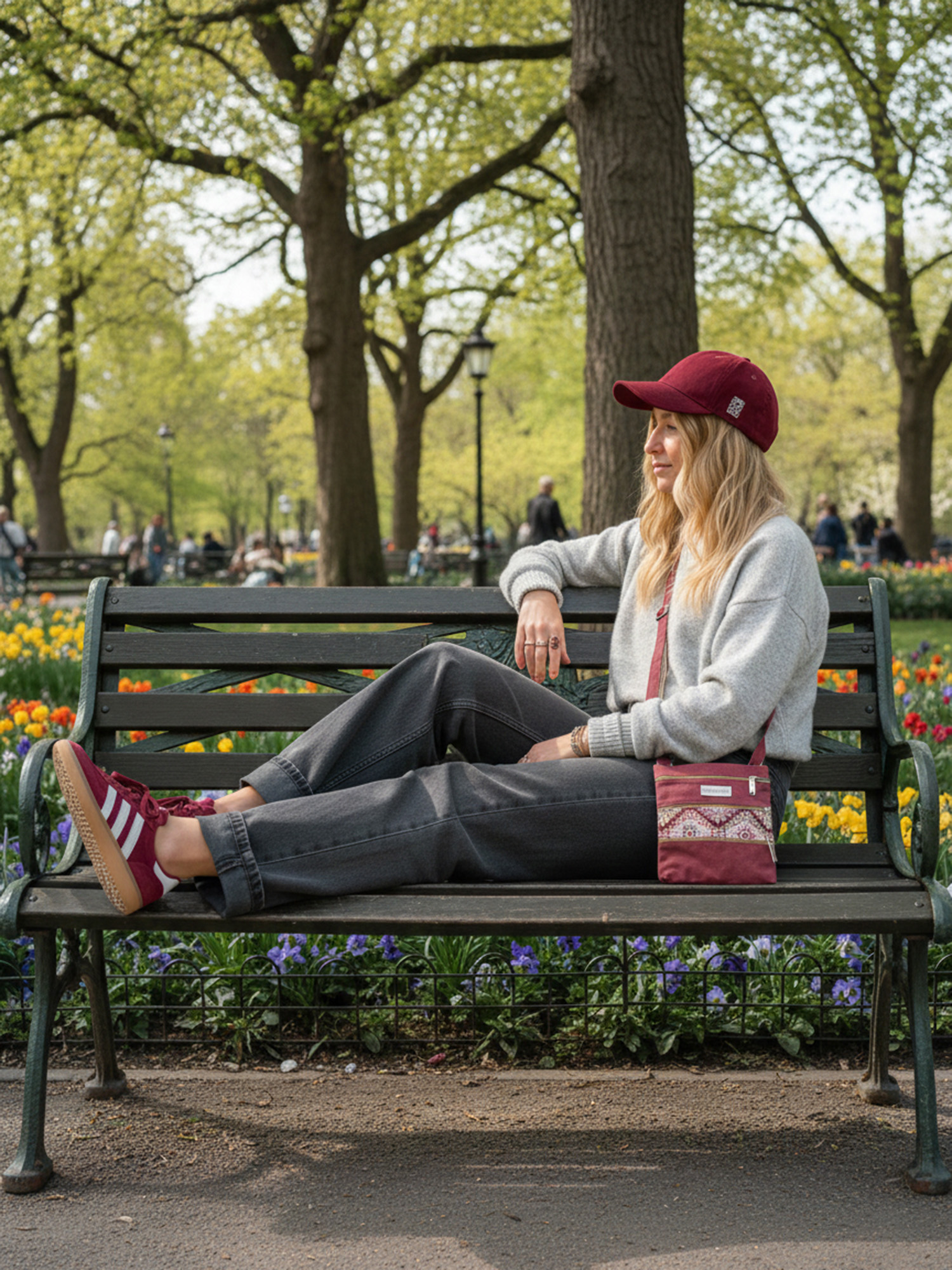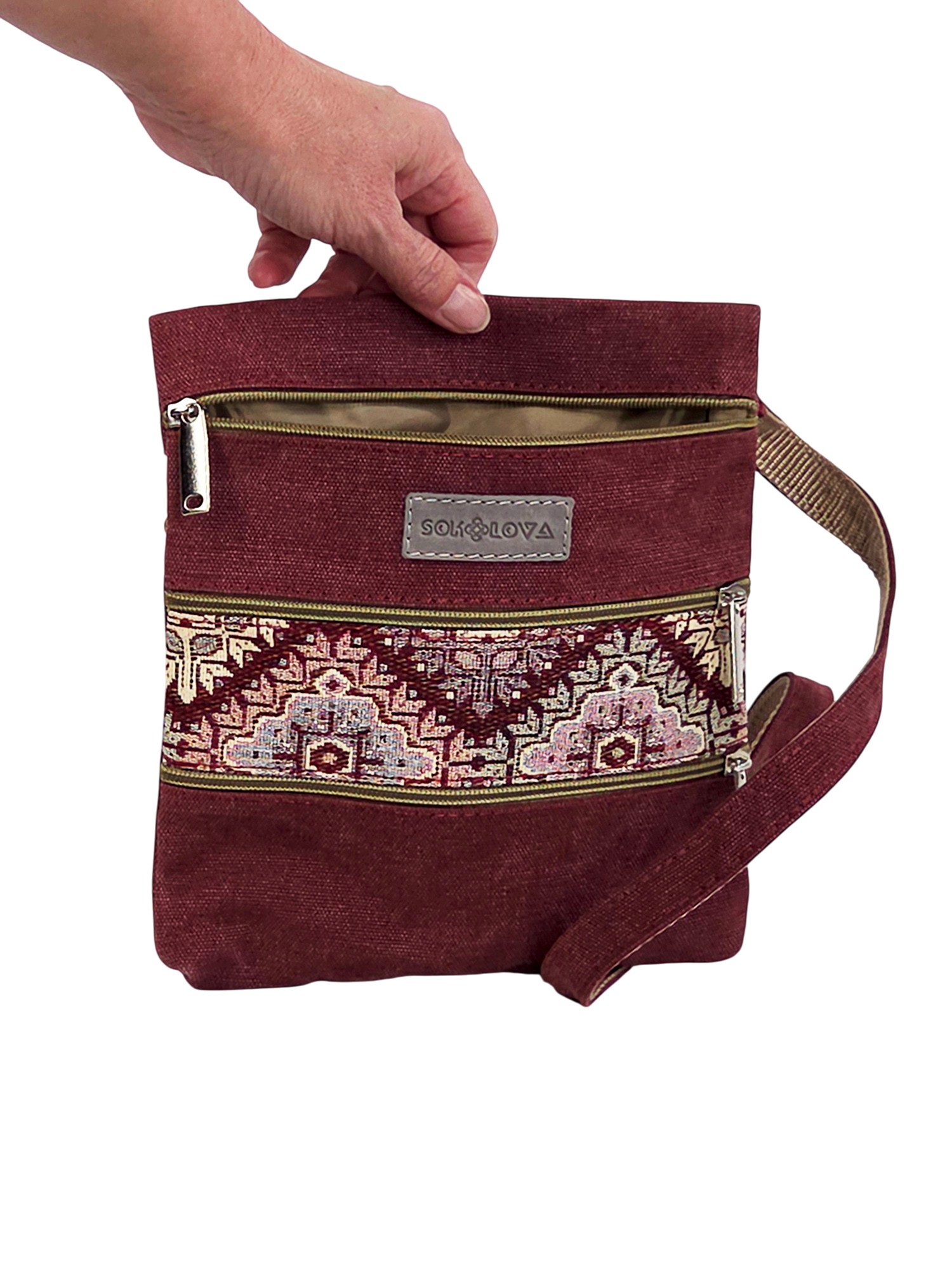 Бордова сумка-кросбоді з етнічним акцентом створює гармонійний образ, який підійде до будь-якого гардероба.