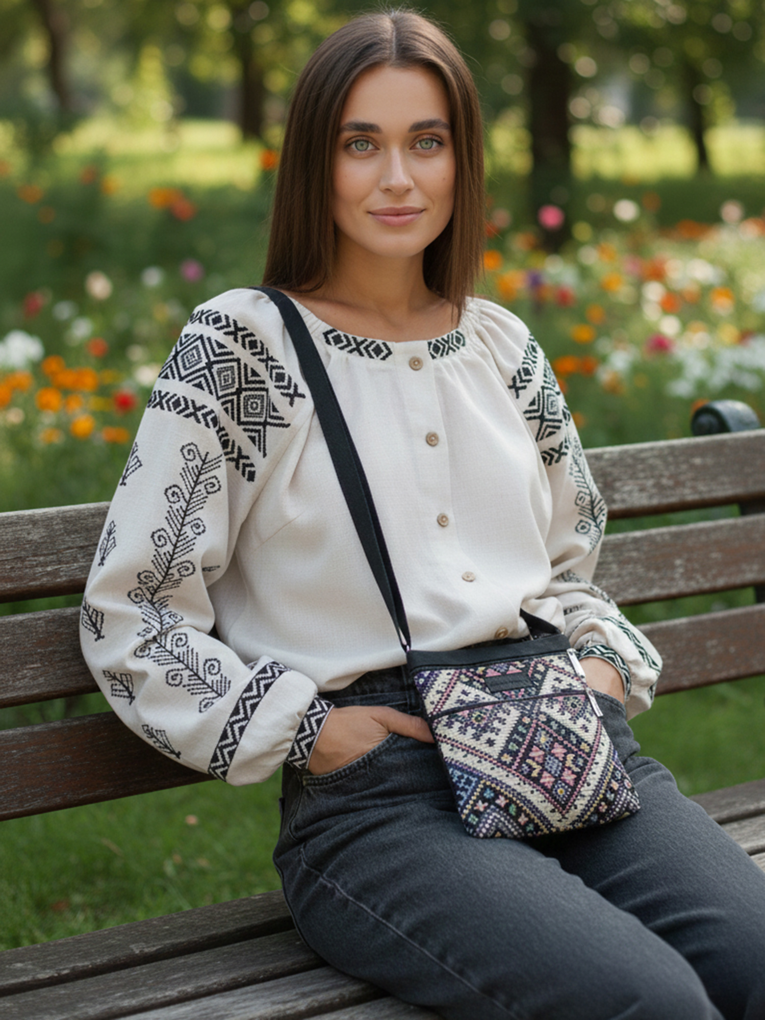 Сумка з українським орнаментом від Sokolova — стильний та зручний аксесуар для повсякденного використання і прогулянок.