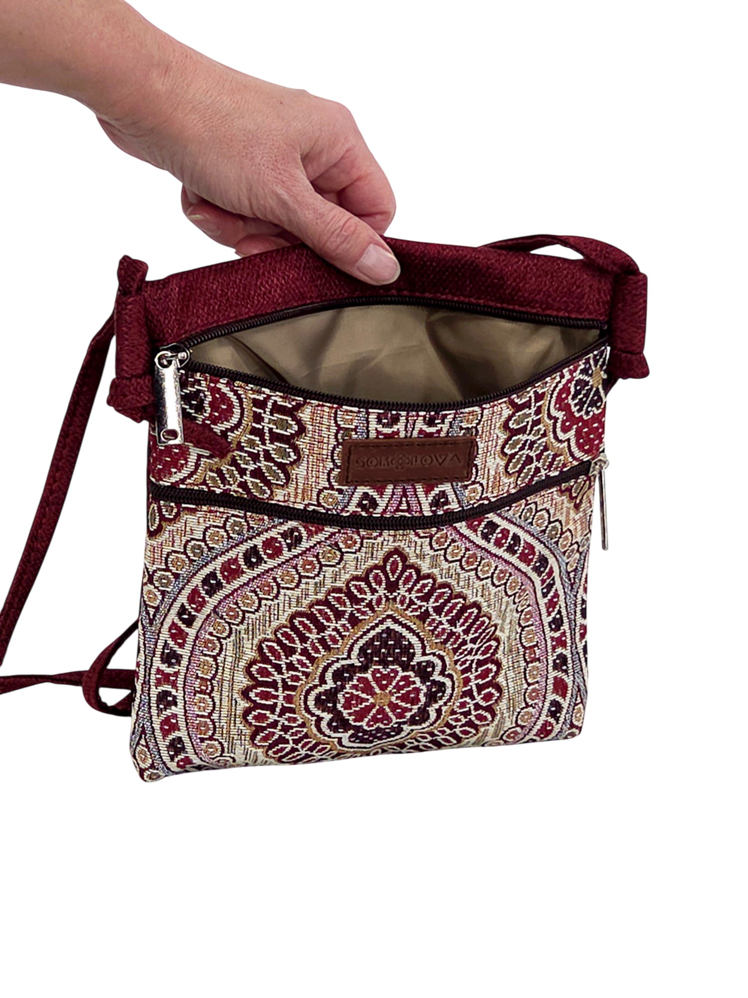 Жіноча сумка з бордовим візерунком від Sokolova — стильний та зручний аксесуар для повсякденного використання і прогулянок.