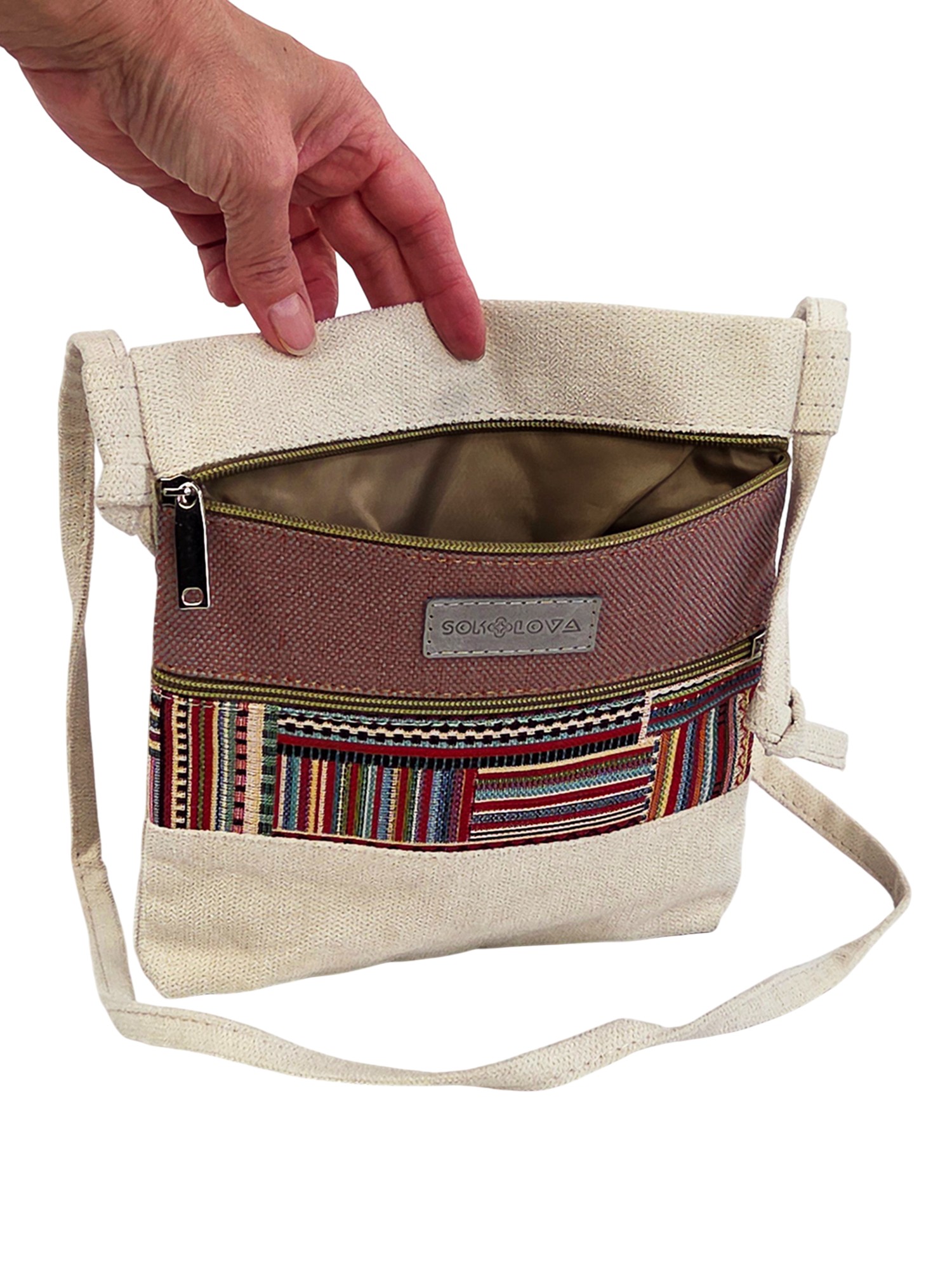 ✧ Виконана з міцної тканини – рогожка. Та декорована гобеленом з кольоровими смужками.