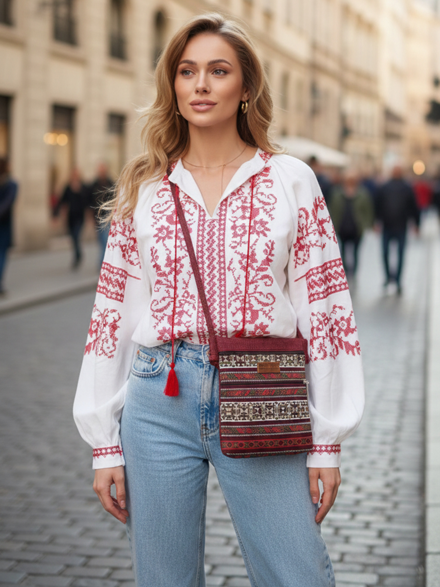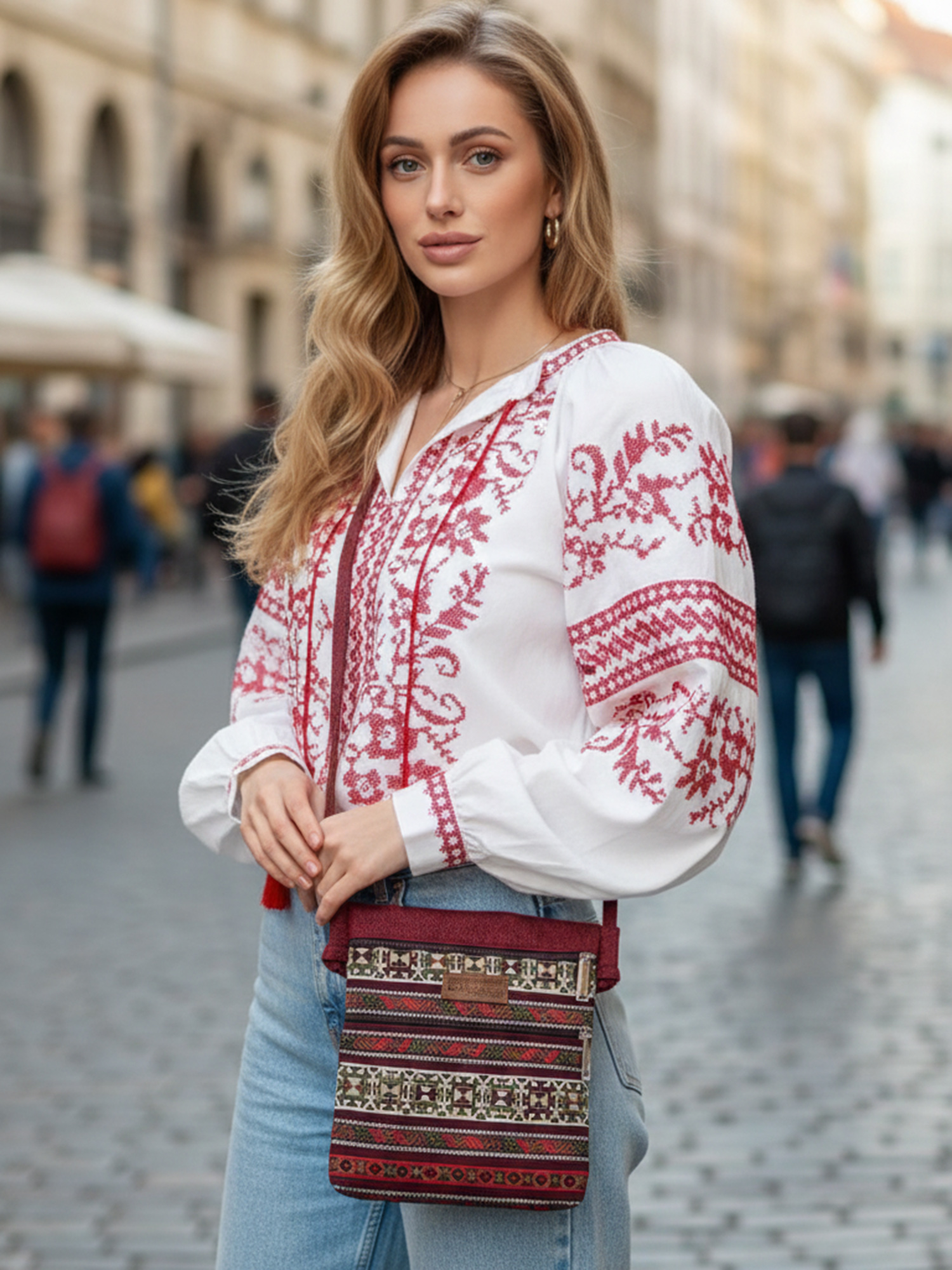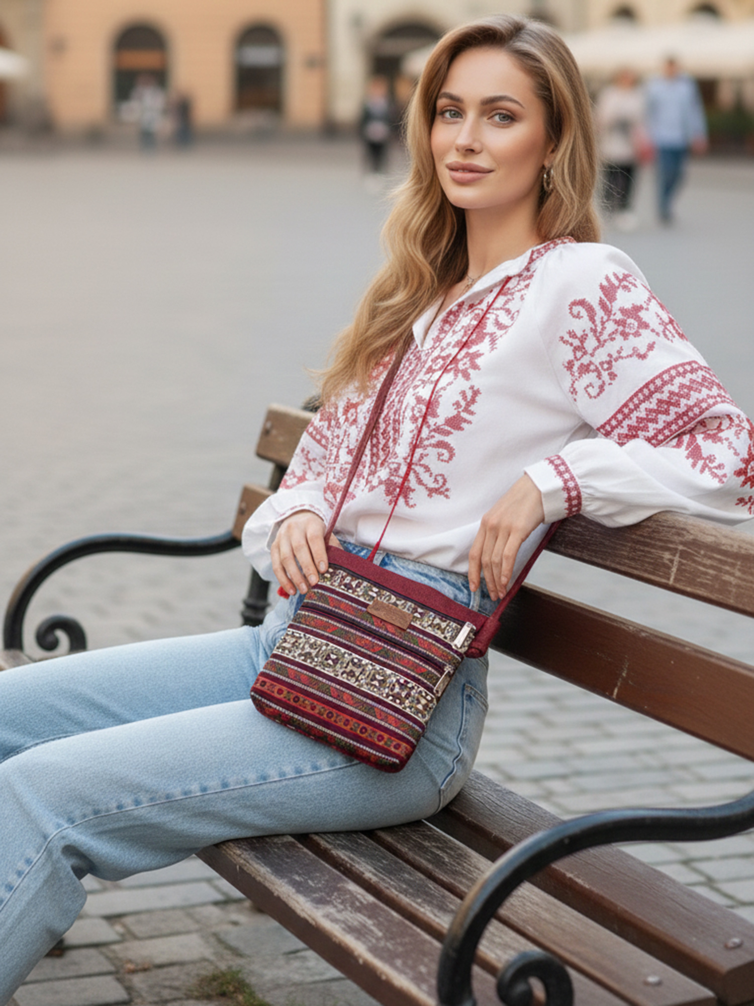 Додайте у свій гардероб цю гобеленову сумочку в бордових тонах, яка привертає увагу та дарує яскравий настрій.