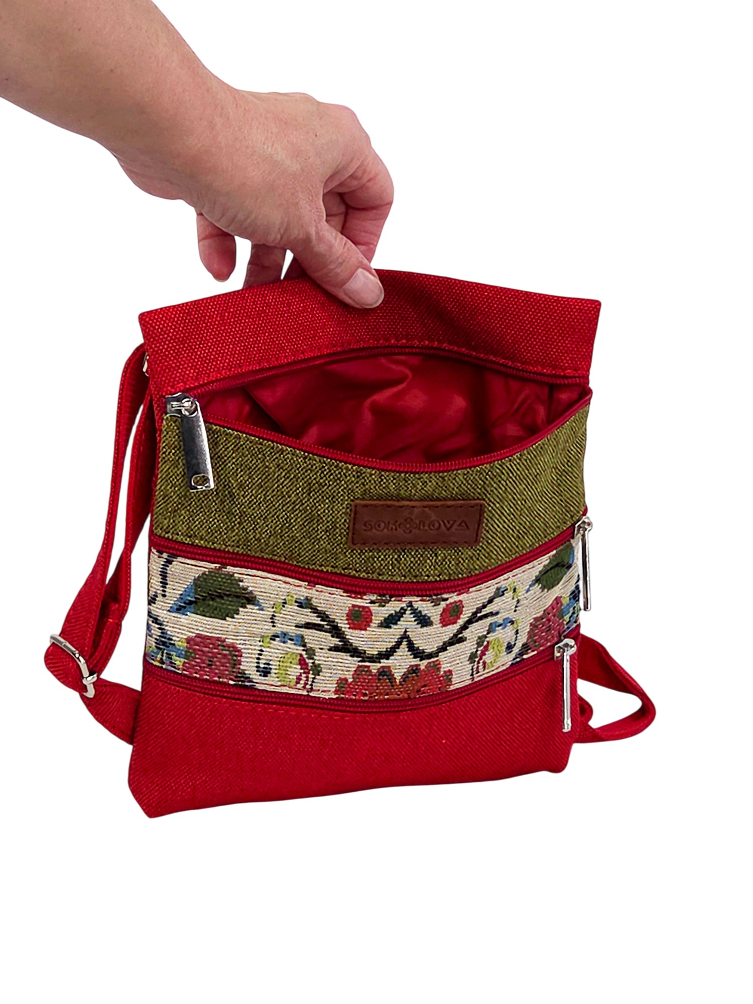 Компактна червона крос-боді від Sokolova це кольоровий акцент і етнічна душа в одному аксесуарі.