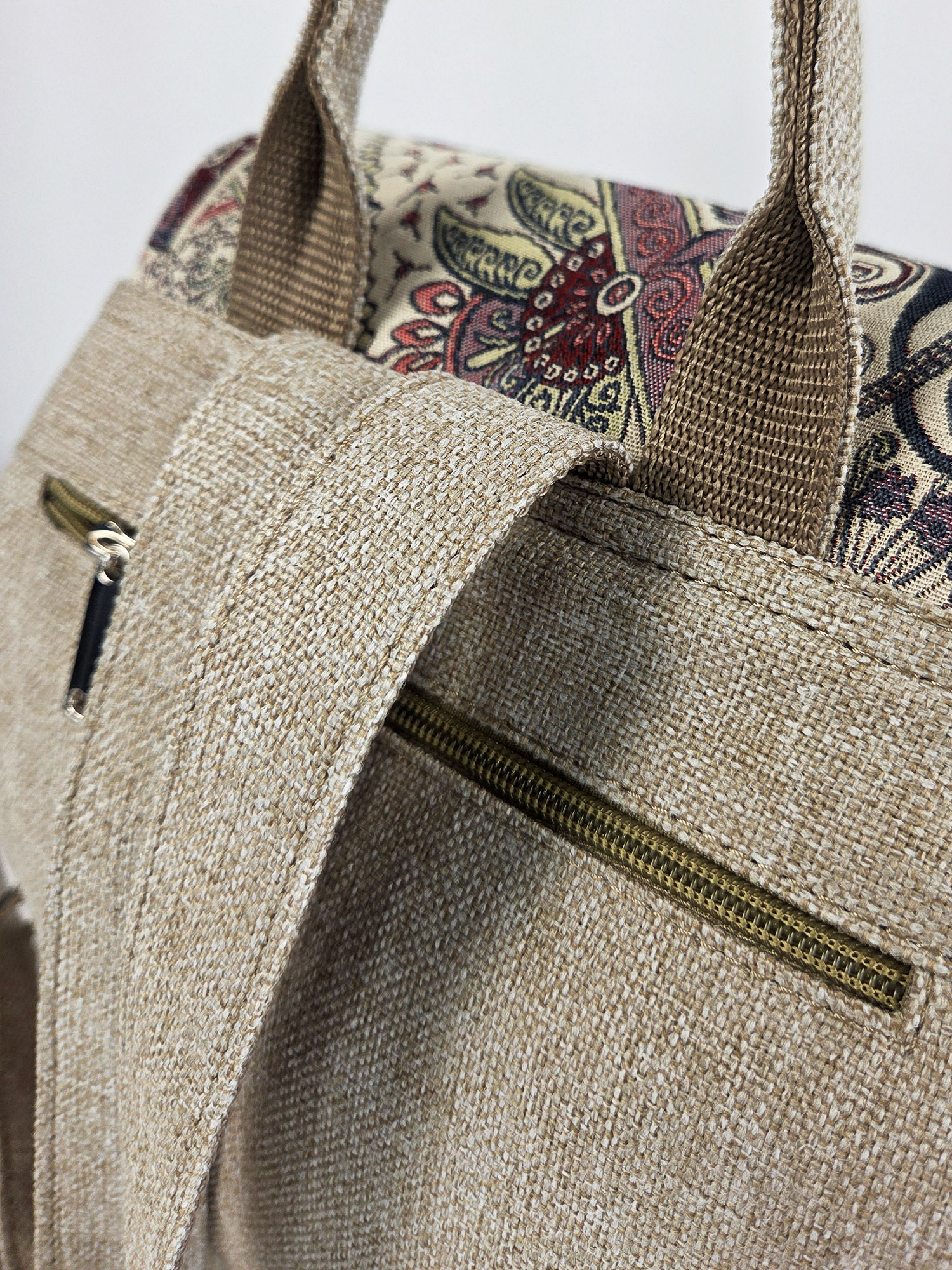 🌸 Рюкзак з флористичним оздобленням має 6 кишень, 4 з них на блискавці.