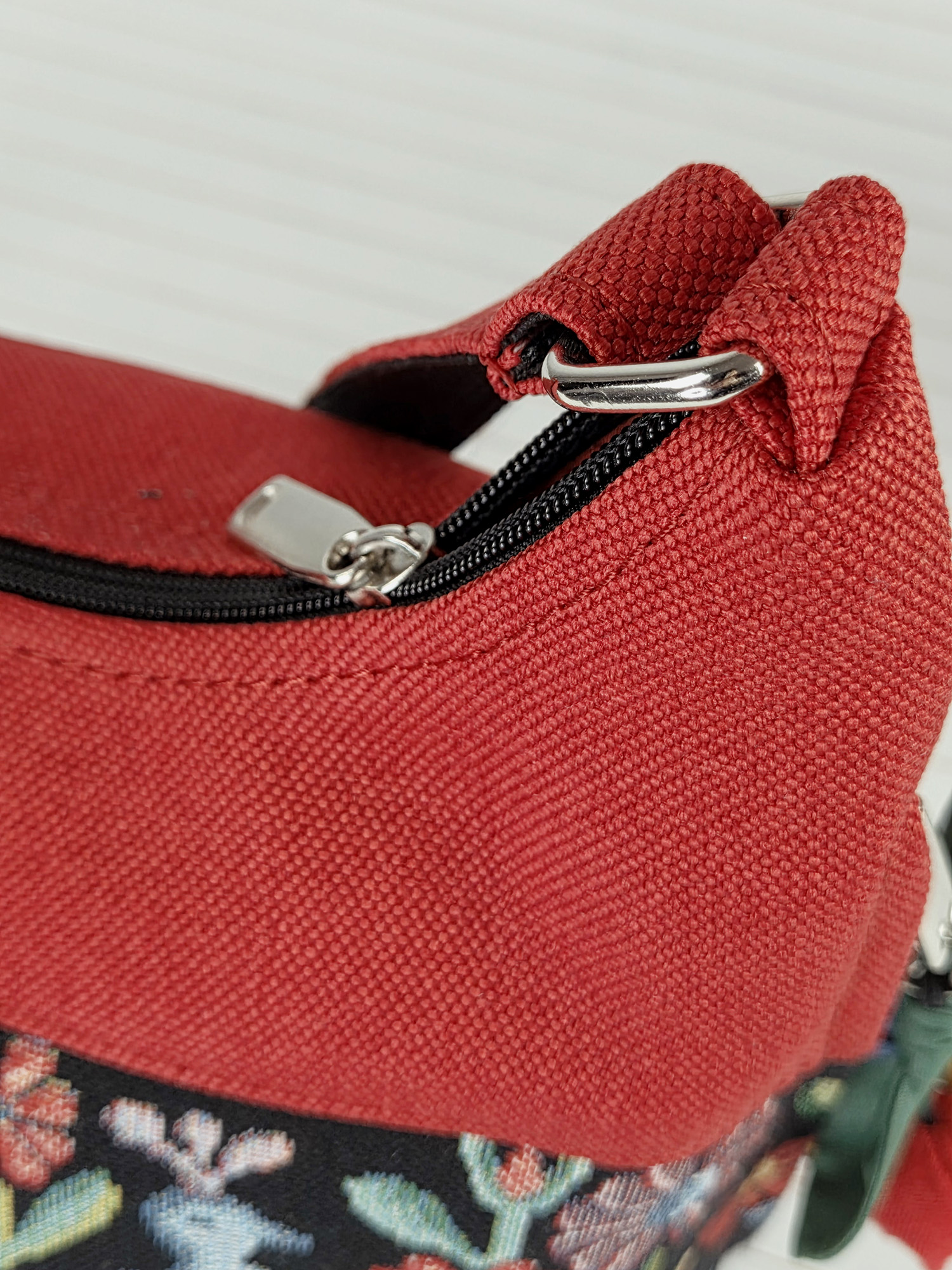 ◾ Колірна гамма: контраст червоного верху та чорного низу створює живий і динамічний образ, що привертає увагу та підкреслює унікальність сумки.