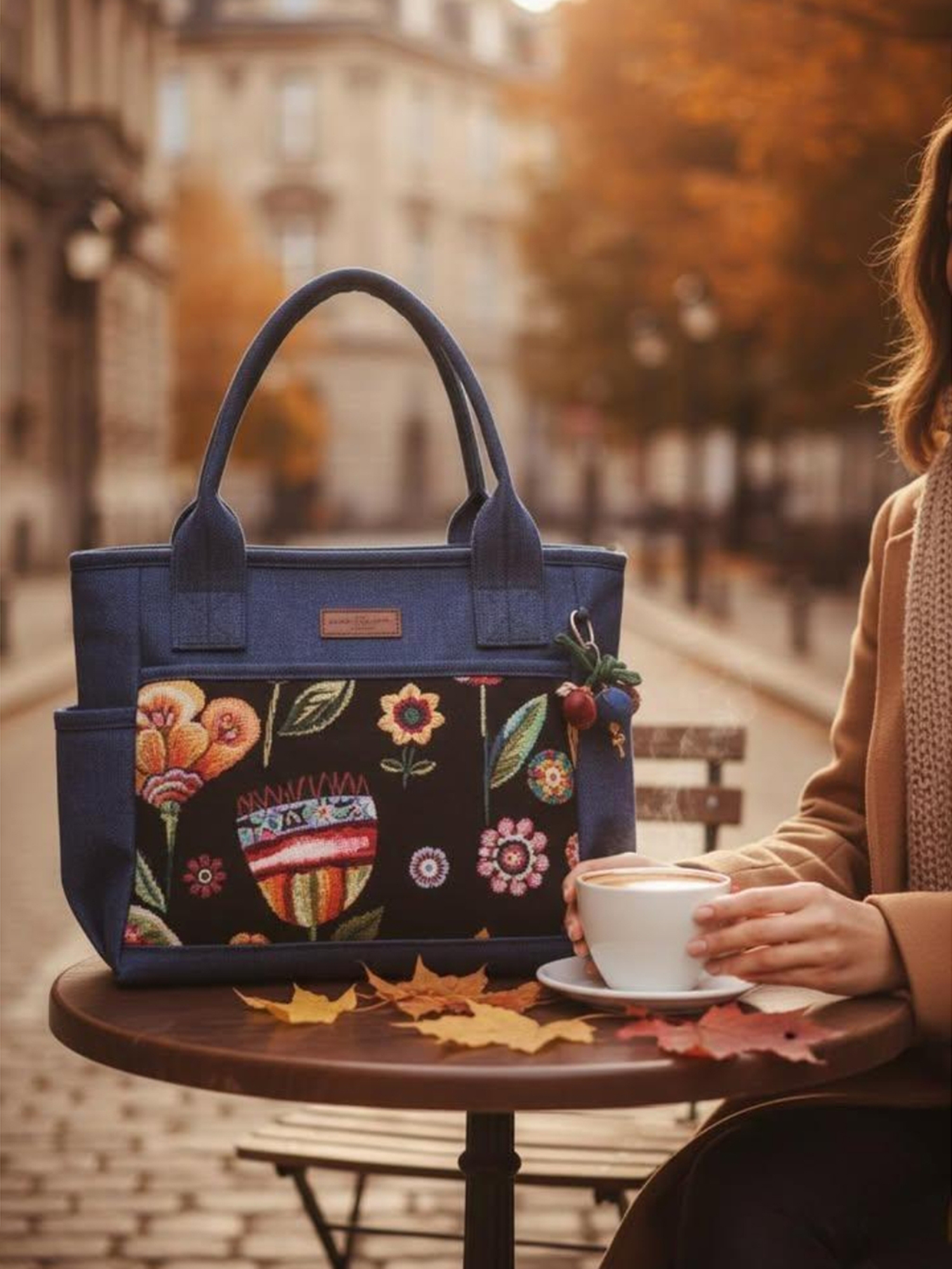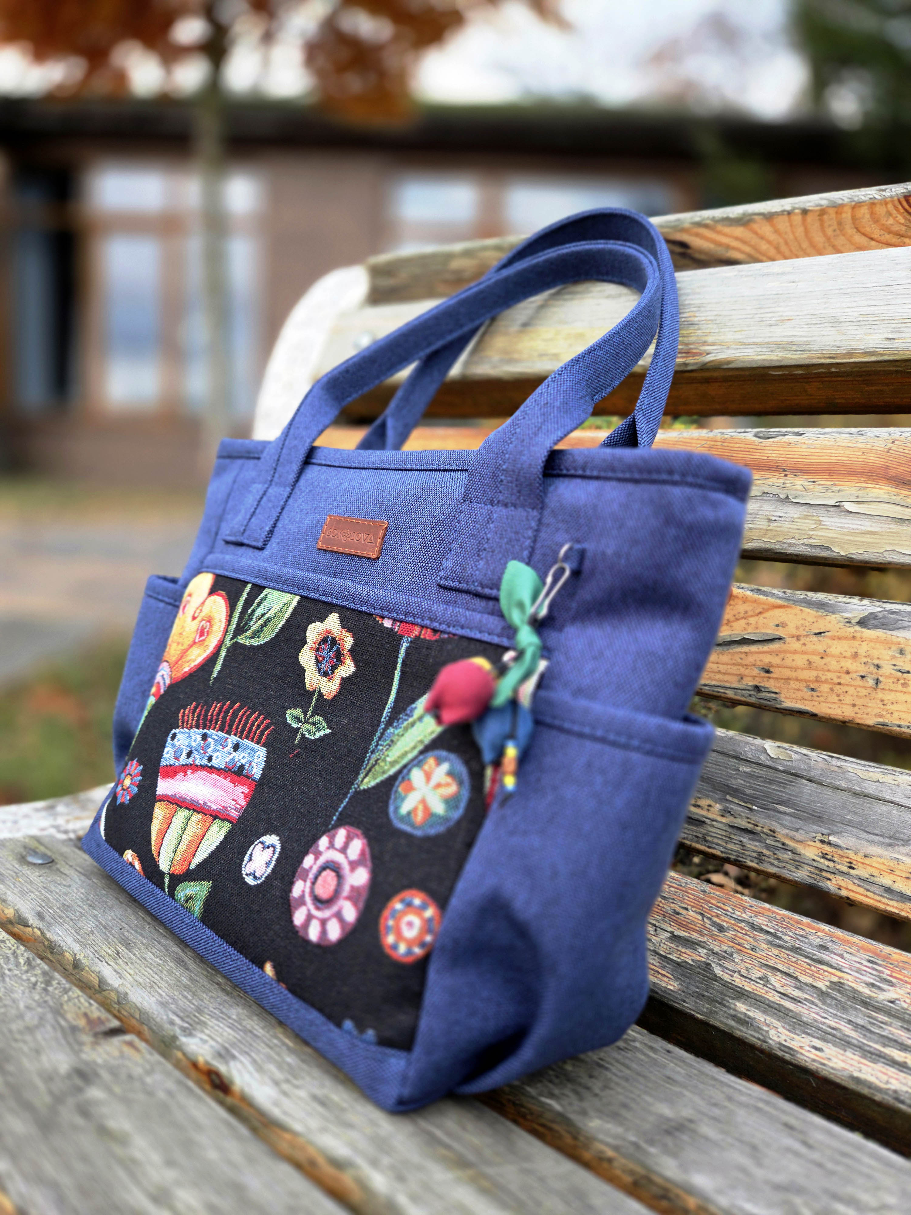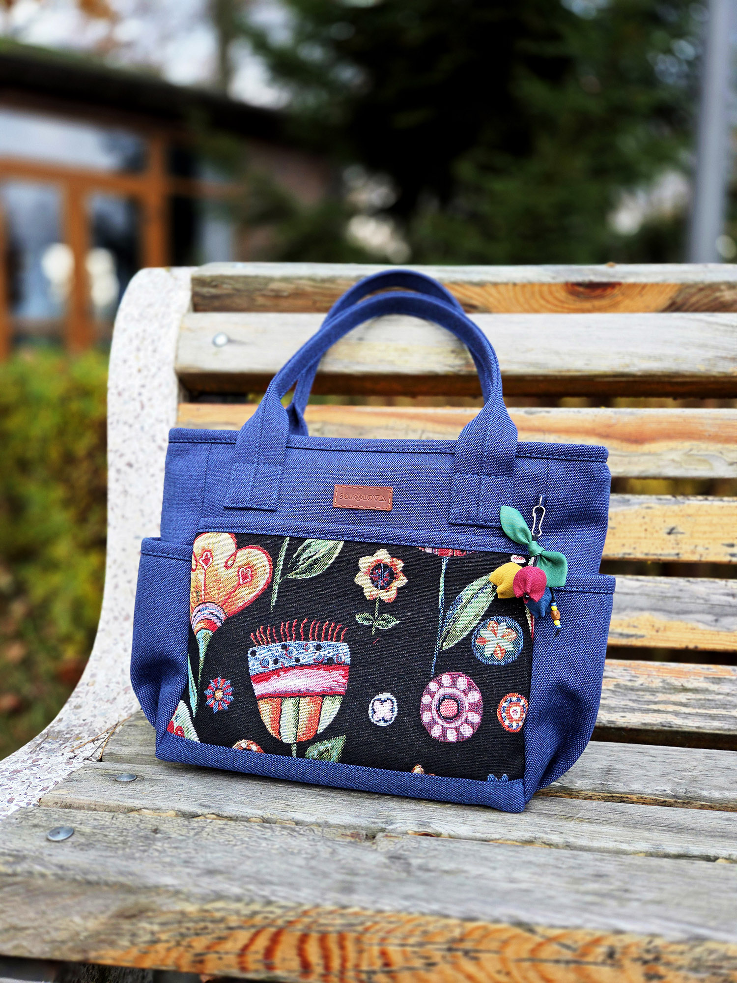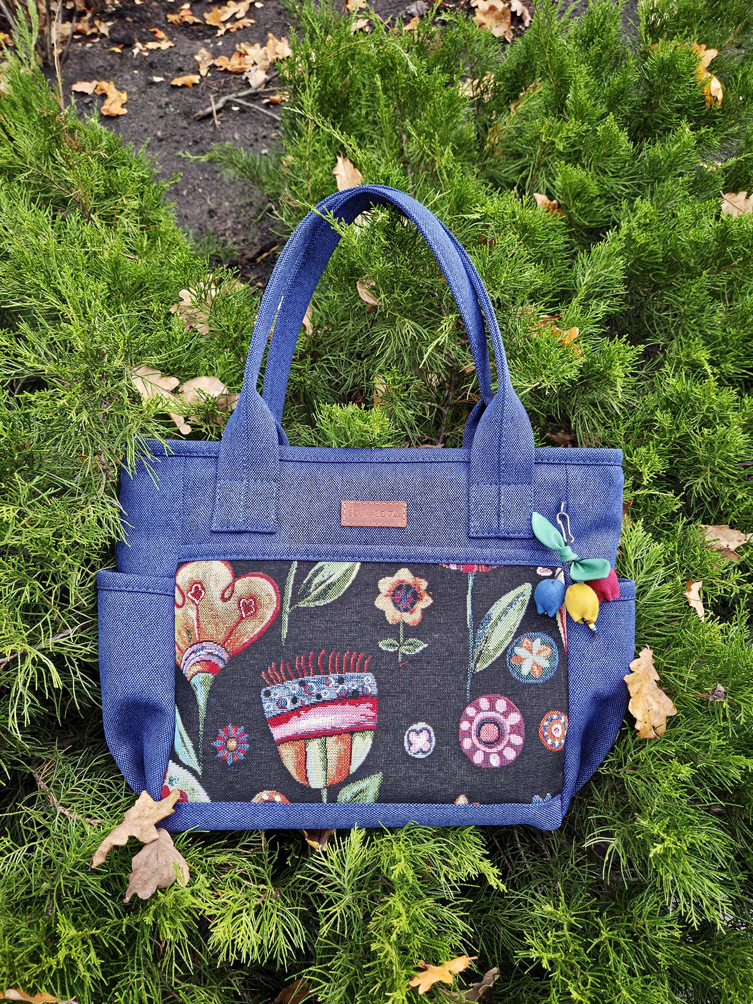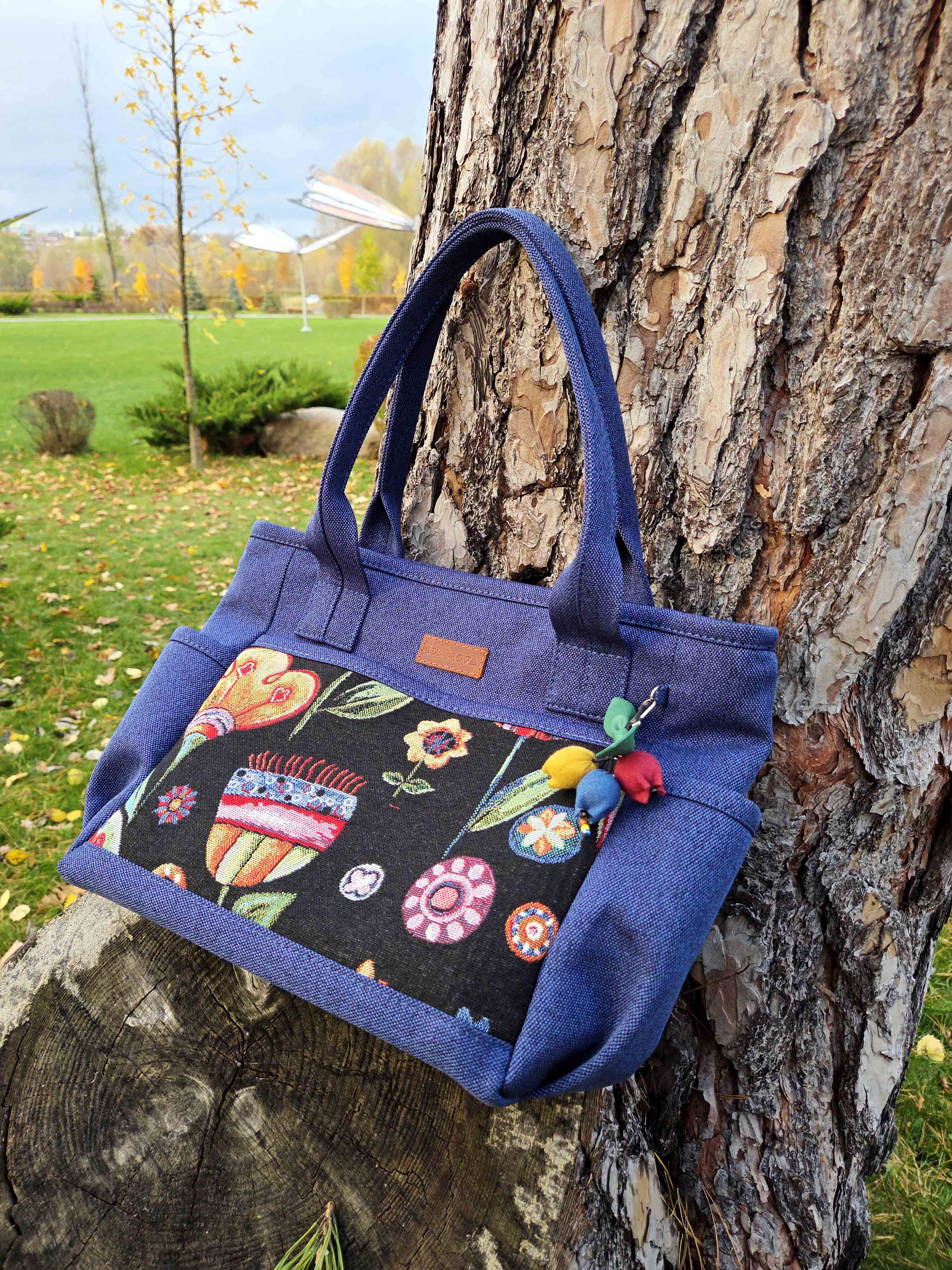 Синя сумка моделі Рута-М з візерунком «Квіти гранату» то грація та неперевершена легкість.