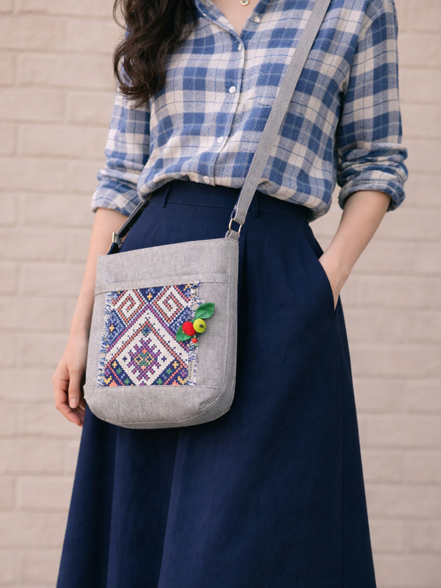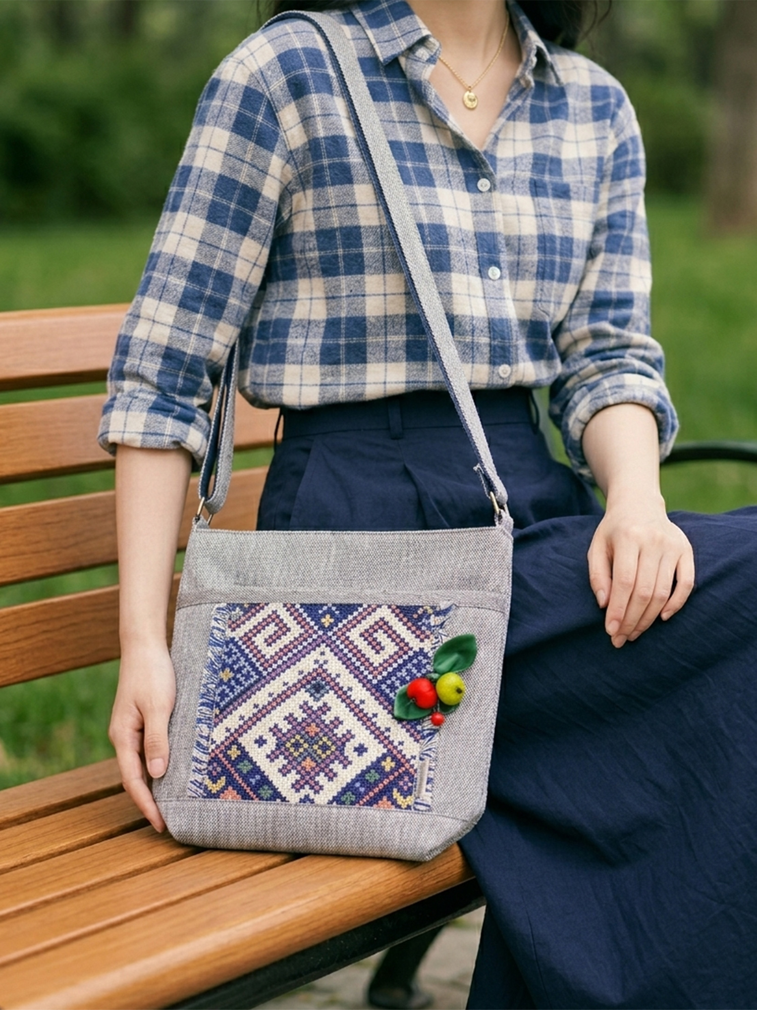 💛 Виконана з міцної сірої рогожки та оздоблена гобеленом з національним орнаментом, що додає виробу автентичності та підкреслює ваше почуття національної гордості.